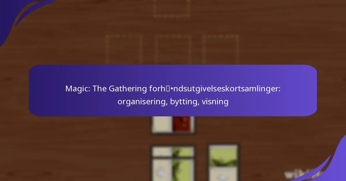 For å effektivt organisere din Magic: The Gathering prerelease kortsamling, fokuser på å sortere etter sjeldenhet og farge, bruke riktige lagringsløsninger og utnytte katalogiseringsverktøy. En godt organisert samling forbedrer ikke bare din handelsopplevelse, men hjelper også med å vise frem kortene dine effektivt.
